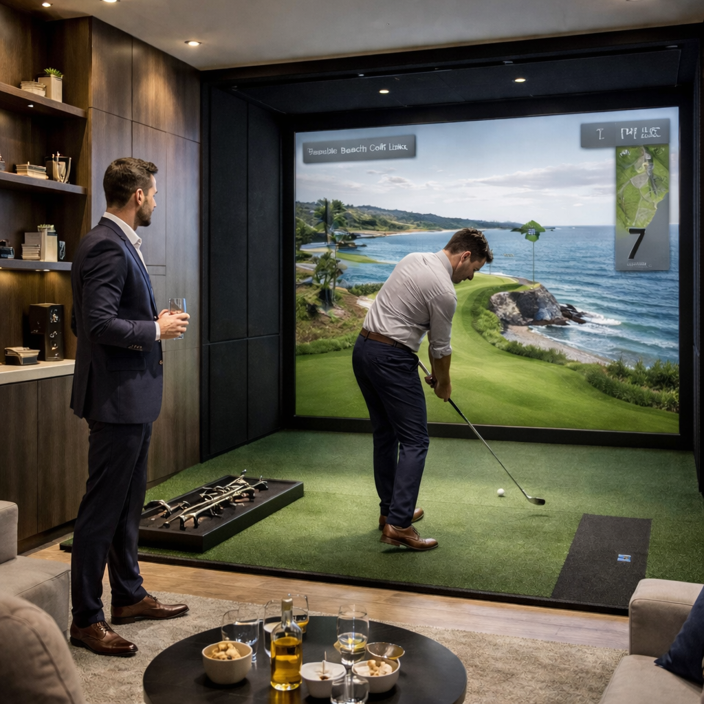 Step into the precision and atmosphere of world class golf with a simulator experience designed to mirror the real course. Our golf simulators capture every swing, spin, and distance with advanced tracking technology, transforming your space into a private golf retreat. Perfect for practice, play, and entertaining, these systems combine professional performance with refined design, turning your passion for the game into an elevated lifestyle experience.